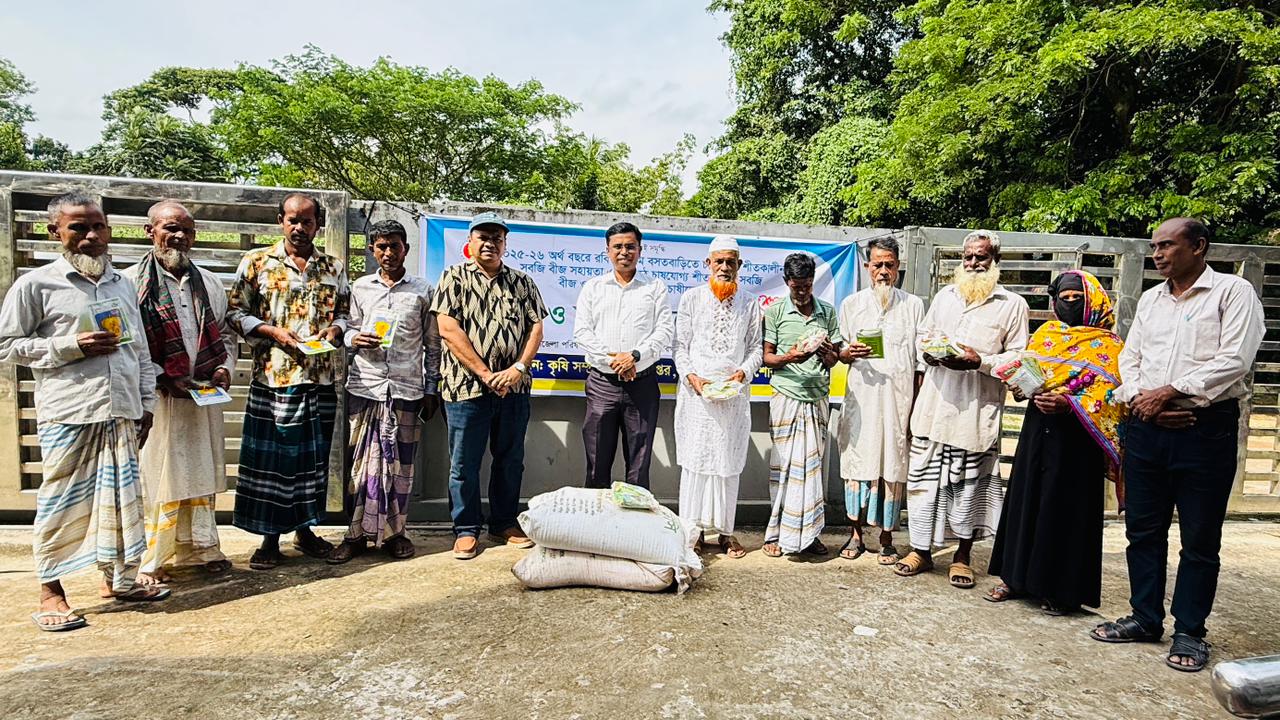 কৃষি সম্প্রসারণ অধিদপ্তর সূত্রে জানা যায়, বসতবাড়িতে আগাম শীতকালীন শাকসবজি চাষের জন্য ১২০ জন ক্ষুদ্র ও প্রান্তিক কৃষককে ০৭ ধরনের মোট ০৯ প্যাকেট ইনব্রিড ও হাইব্রিড বীজ প্রদান করা হয়েছে।